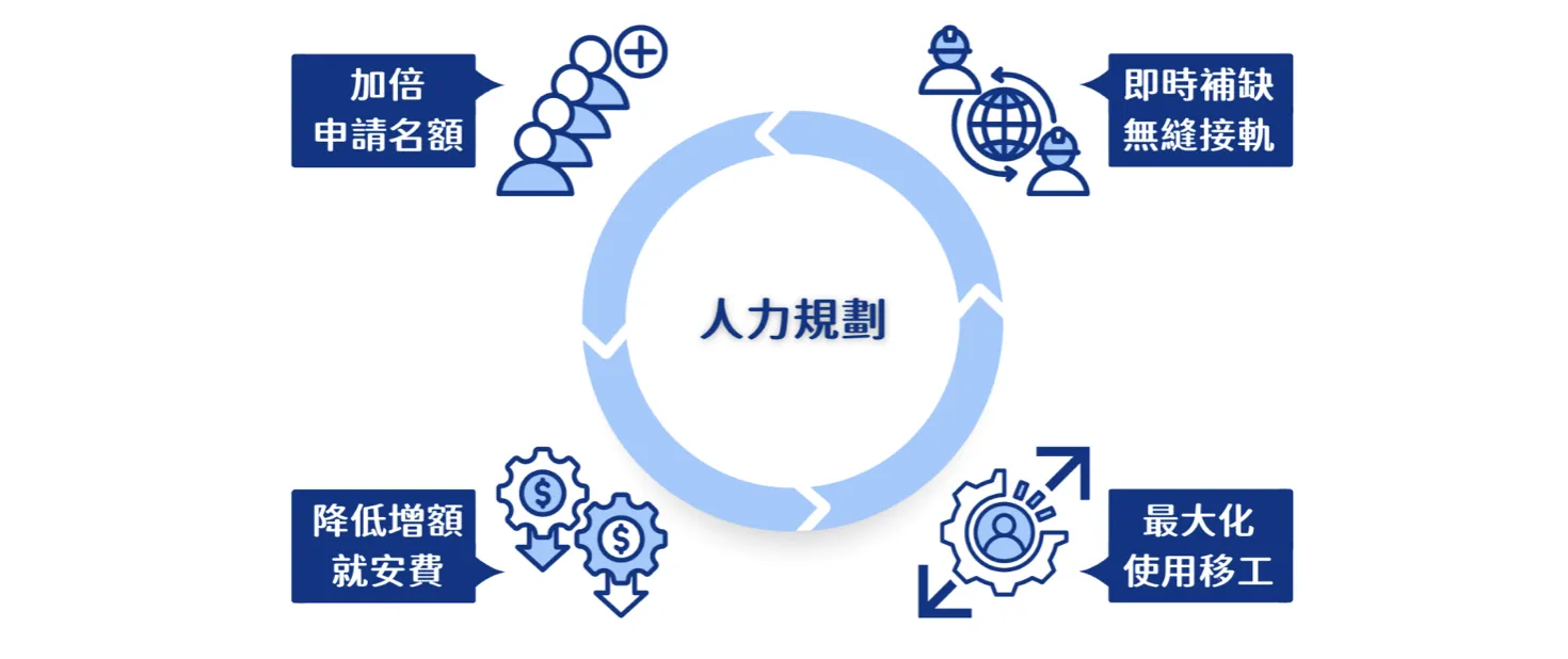 因上述法規規定,當事業類雇主遇到移工逃跑空窗期時,除了耐心等待之外,此時最需要的就是尋找一間專業的人力仲介公司幫您重新做名額的規劃使用!